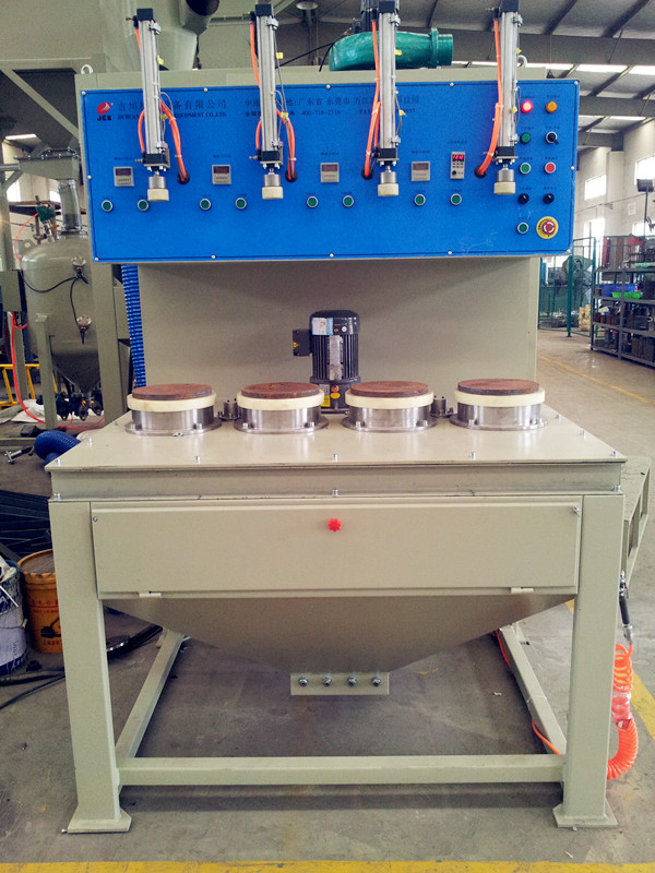 一、 設(shè)備組成: a)?? :主機 i.????? 主機由小轉(zhuǎn)盤轉(zhuǎn)動機構(gòu)、噴槍擺動機構(gòu)、噴砂室、操縱系統(tǒng)、儀表箱等組成,電機均采用臺灣臺邦牌。室體由3mm冷軋鋼板焊接而成,內(nèi)外表面噴漆,外形尺寸: 1350X1250X1950(mm)。 ii.????? 4支噴砂槍分4組全部固定在軸上定點對工件噴砂;噴嘴材質(zhì):進口碳化硼噴嘴。噴嘴通徑:Ф8mm。